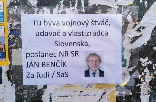 22.2.2022 (Webnoviny.sk) – Generálna prokuratúra SR (GP SR) koná v prípade skupiny, ktorá prišla búchať na dvere poslanca Jána Benčíka a vo vchode bytovky nalepili plagáty o tom, že je vlastizradca.
