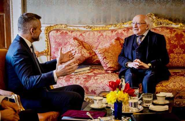28.2.2024 (SITA.sk) – Ekonomická výmena s Írskom neustále rastie. Za prvých deväť mesiacov minulého roka objem obchodu prekročil o 20 percent a tento trend pokračuje aj naďalej. Uviedol to predseda parlamentu Peter Pellegrini, ktorého v stredu v Dubline v prezidentskom paláci prijal írsky prezident Michael D. Higgins.