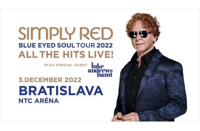 Anglická formácia Simply Red, na čele s červenovlasým spevákom Mickom Hucknallom, po dvojročnom čakaní a niekoľkých presunoch termínov koncertu, konečne dorazí na Slovensko! V bratislavskej NTC Aréne už 3.12.2022 populárne zoskupenie svojich fanúšikov poteší dávkou soulu i funky, ale aj ochutnávkou reggae a to vďaka koncertu k „Blue Eyed Soul – All The Hits Live“ turné, ktoré nesie meno podľa posledného štúdiového albumu, ktorý kapela vydala v roku 2019.