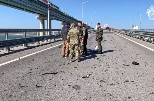 Krymský most, ktorý je ukážkovým projektom vlády ruského prezidenta Vladimira Putina, poškodila explózia, z ktorej Moskva obviňuje Ukrajinu. Moskva uviedla, že pri výbuchu na moste zomreli traja ľudia. Podľa Ruska na moste explodovalo nákladné vozidlo. Niektorí ukrajinskí predstavitelia poškodenie mosta privítali, ale Kyjev sa k útoku neprihlásil.